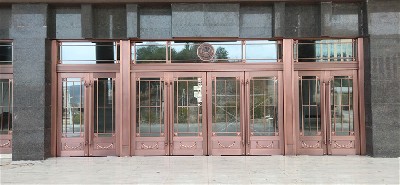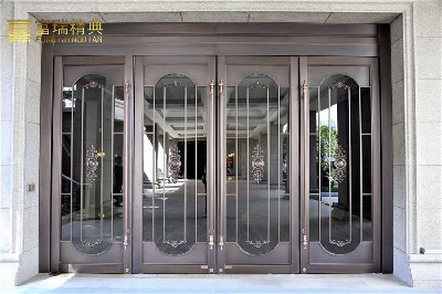 材质:玻璃紫铜门、铜花格