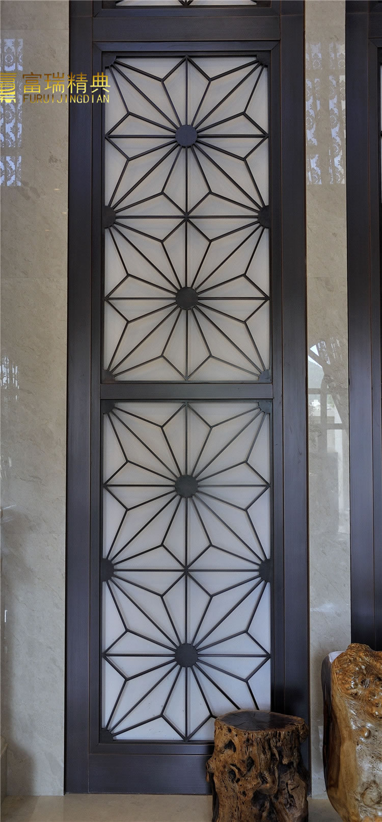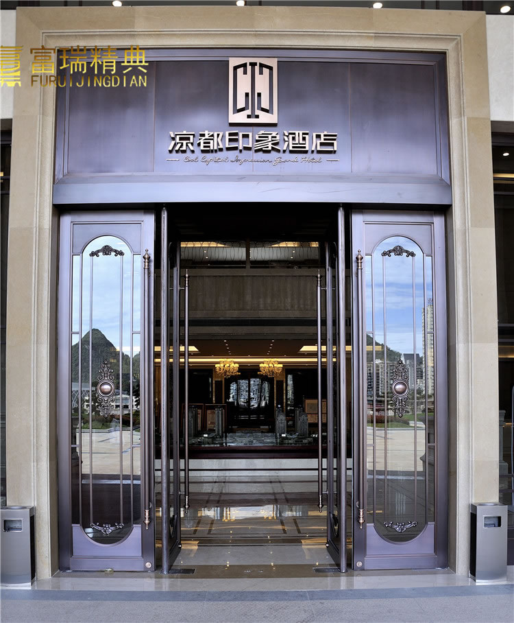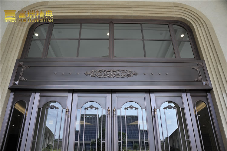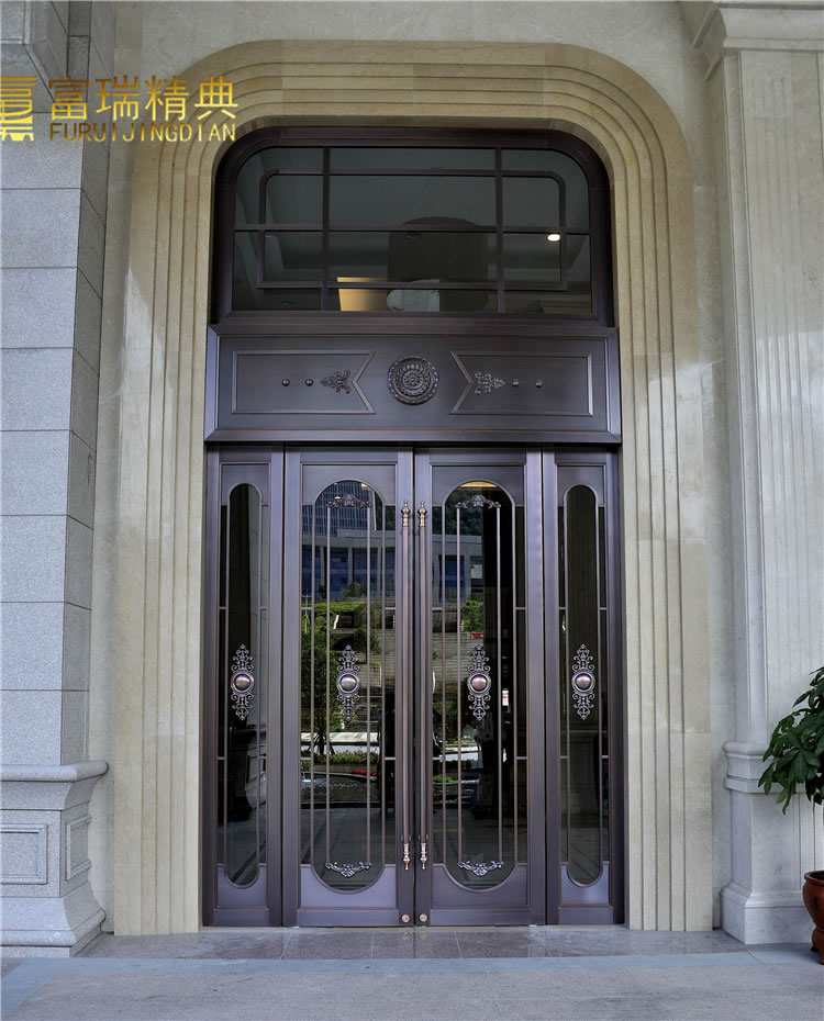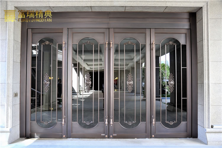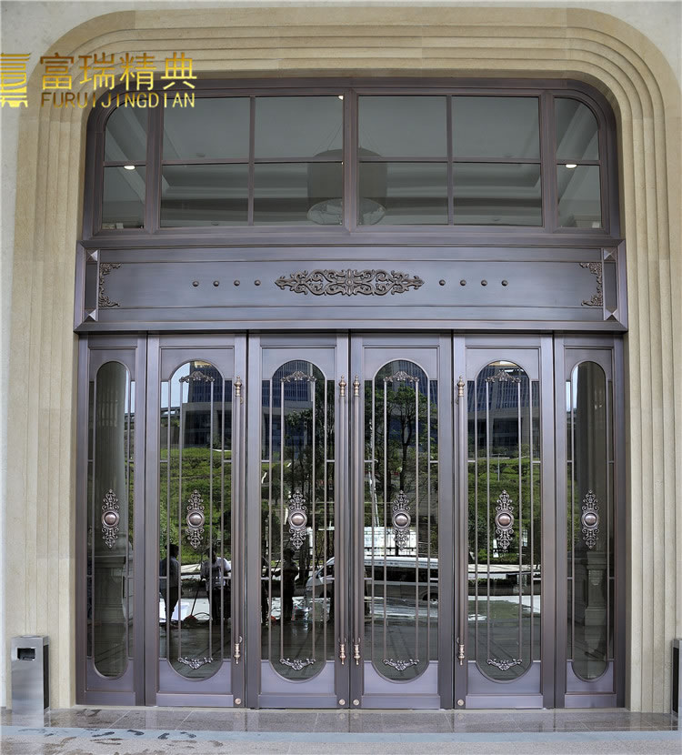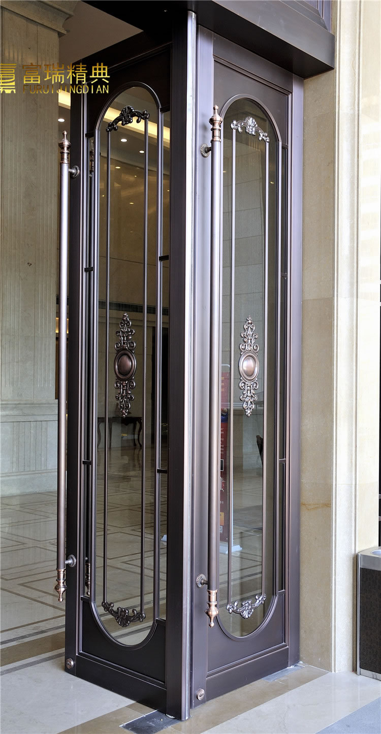 材质:玻璃紫铜门、铜花格