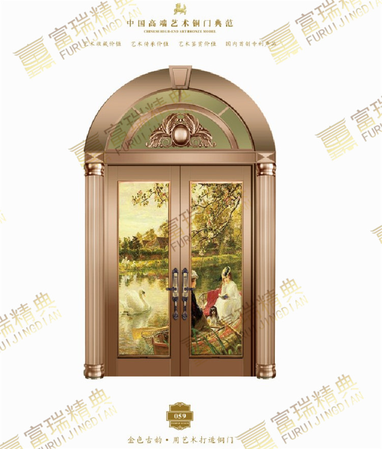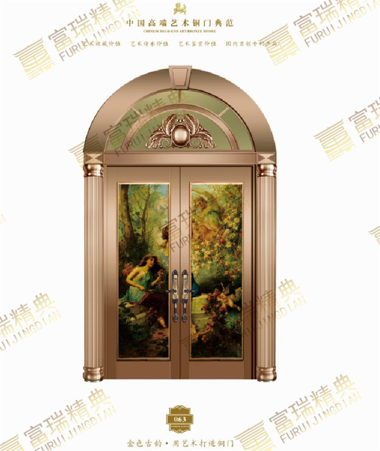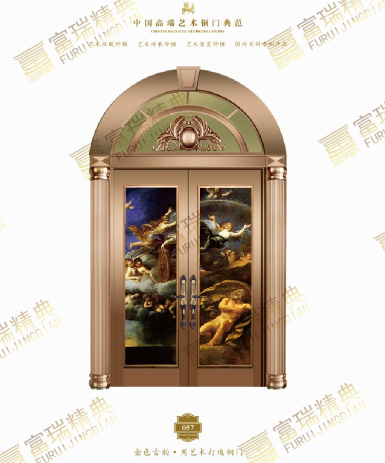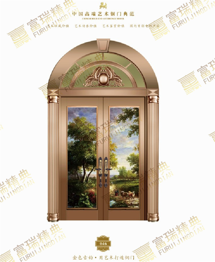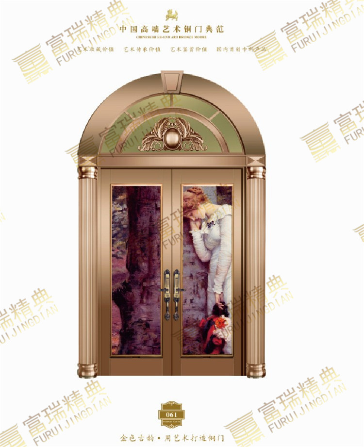 项目简介:双开油画艺术铜门,铜艺与彩绘结合,我司已经申请专利