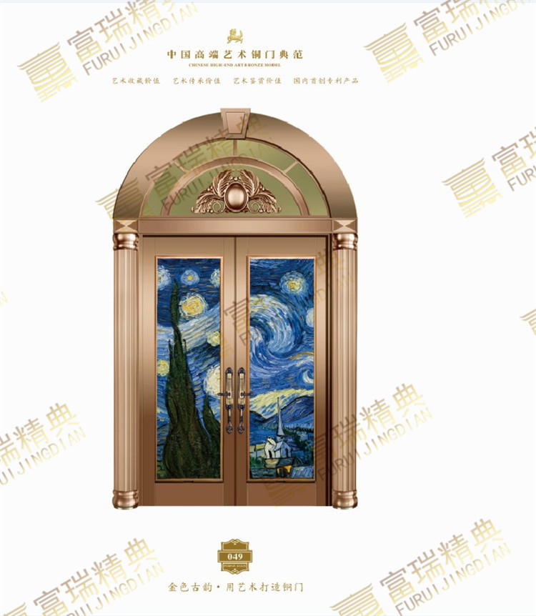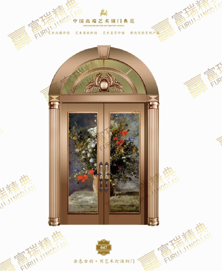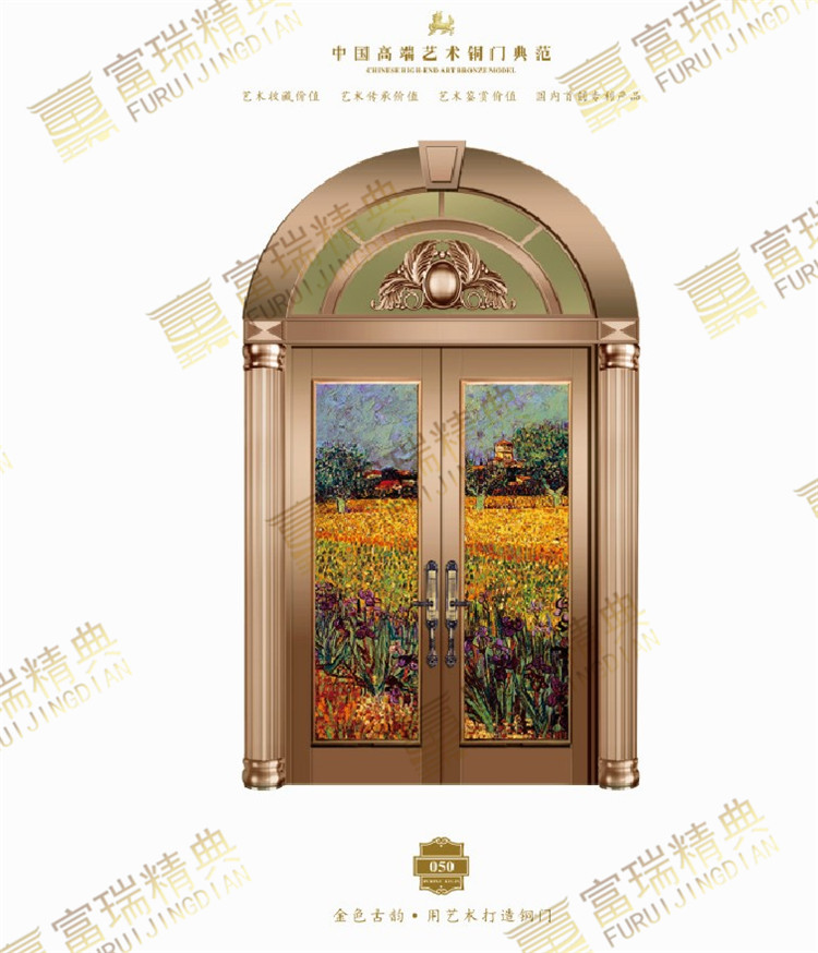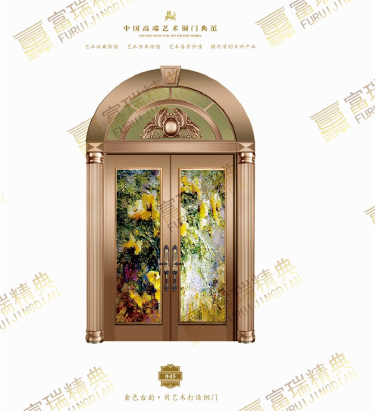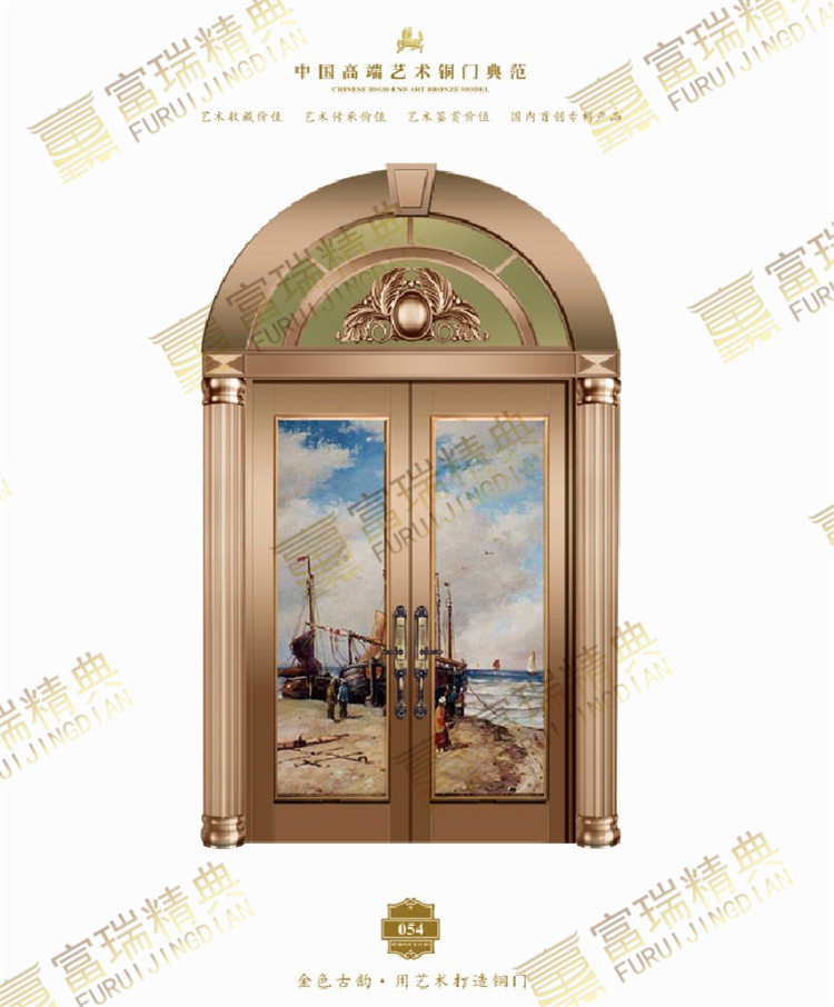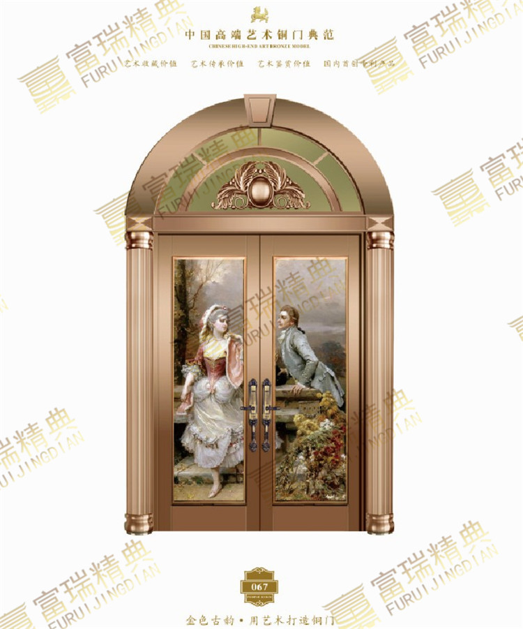 项目简介:双开油画艺术铜门,铜艺与彩绘结合,我司已经申请专利
