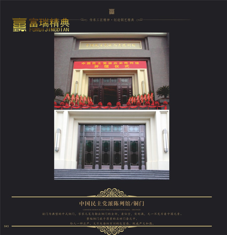项目简介:重庆渝州宾馆铜门
