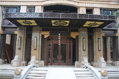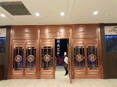 材质:玻璃铜门、不锈钢雕塑小品及装饰