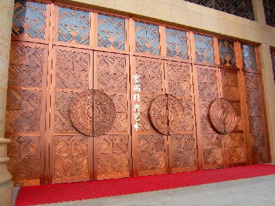 材质:玻璃铜门、玻璃钢雕塑小品、精神堡垒