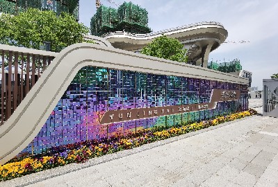 项目简介:四川宜宾阳光·天空之城售楼部风动景墙