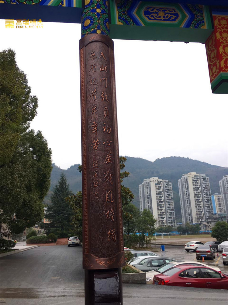 材质:铜牌匾、铜楹联、仿古门楼