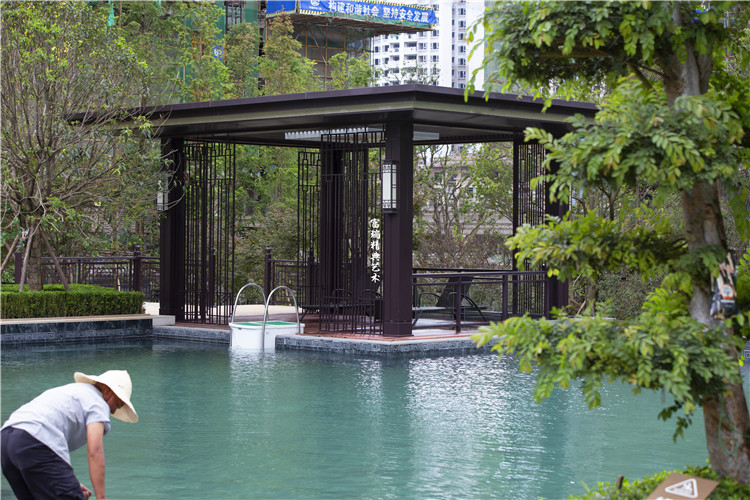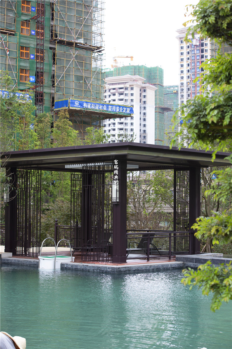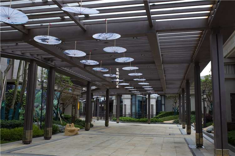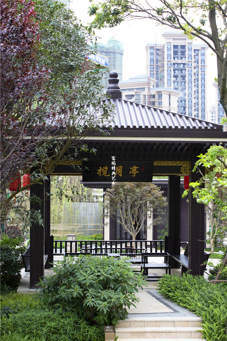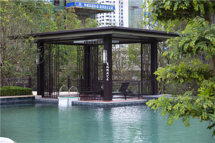 项目简介:贵州贵阳恒大观山悦府凉亭廊架、中式门楼、金属装饰及景观小品