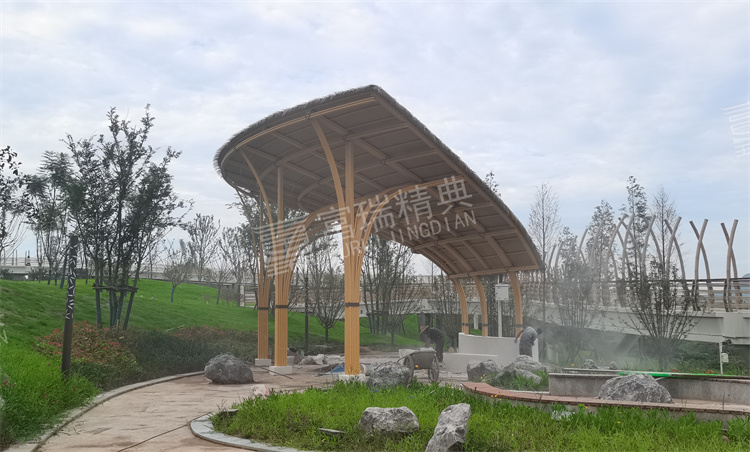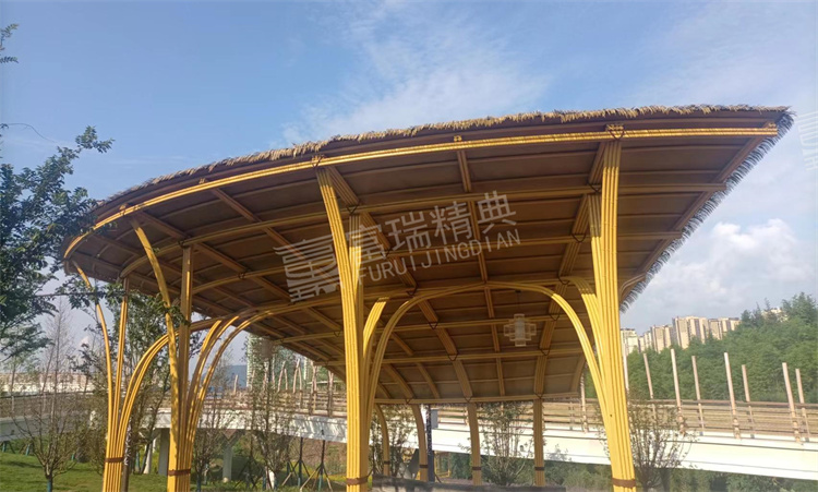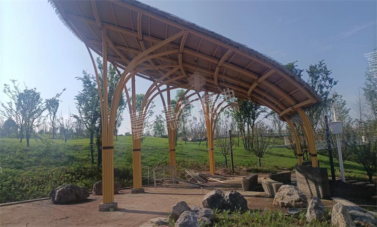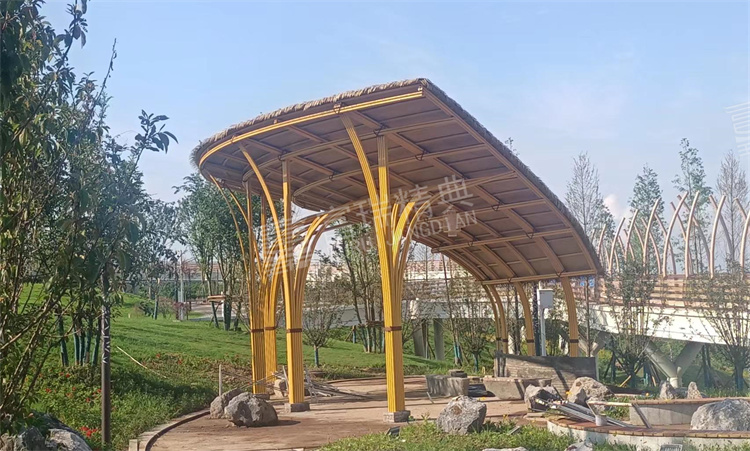 项目简介:四川宜宾淯江河钢结构廊架,景观亭