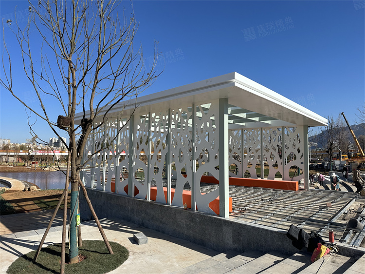 项目简介:云南宣威东河公园不锈钢廊架构筑物