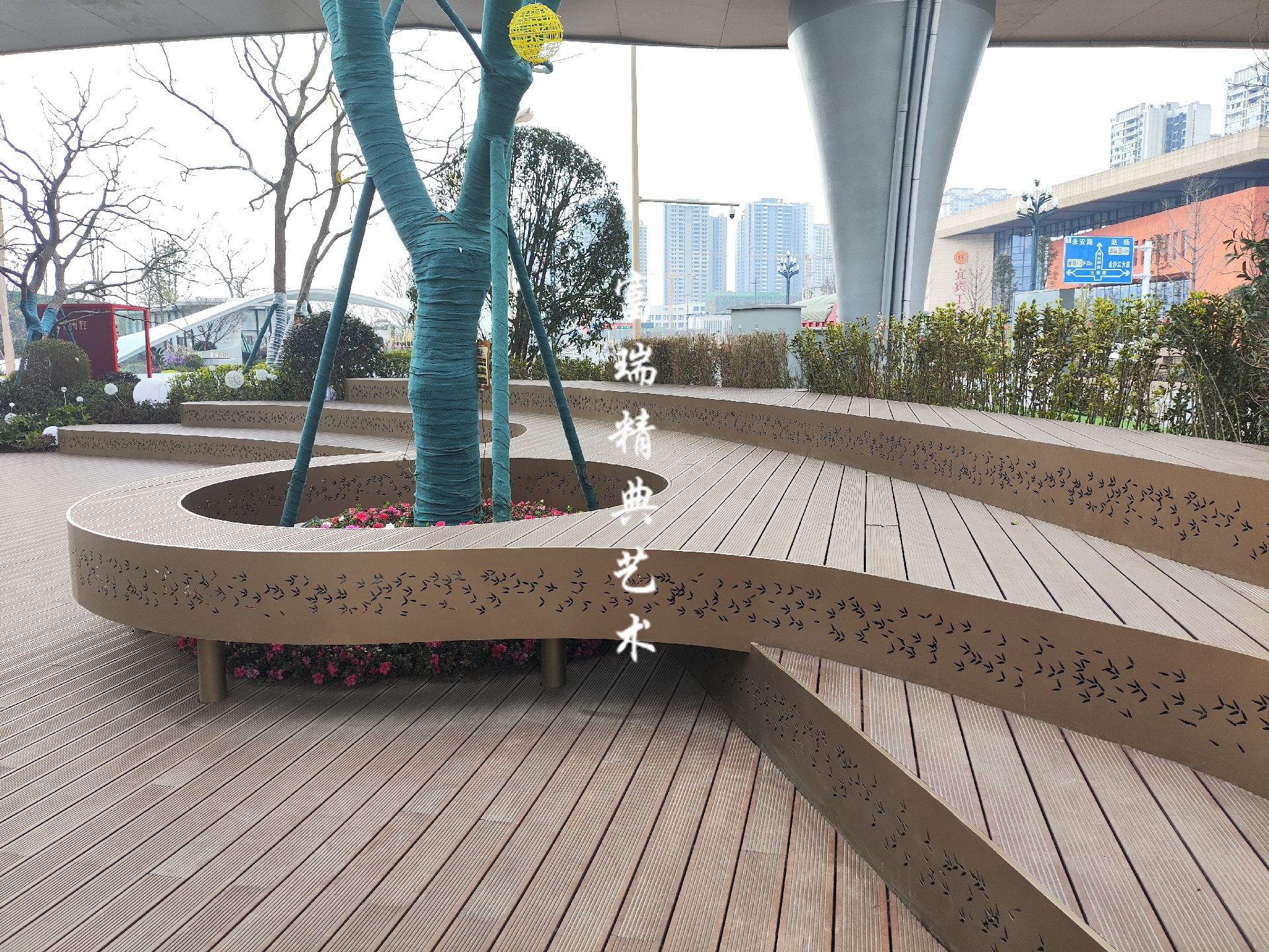 项目简介:四川宜宾高铁站镀锌钢板树池