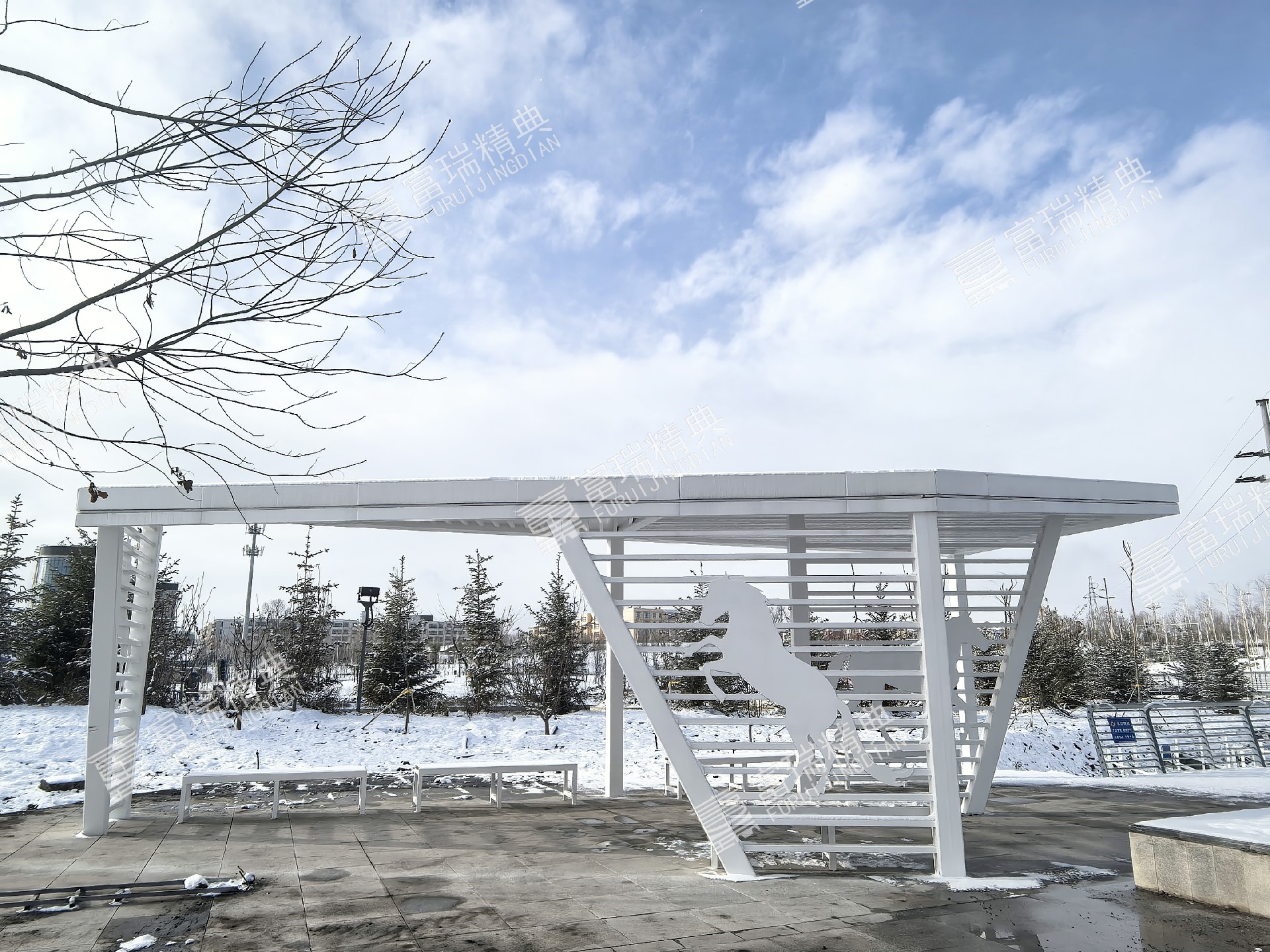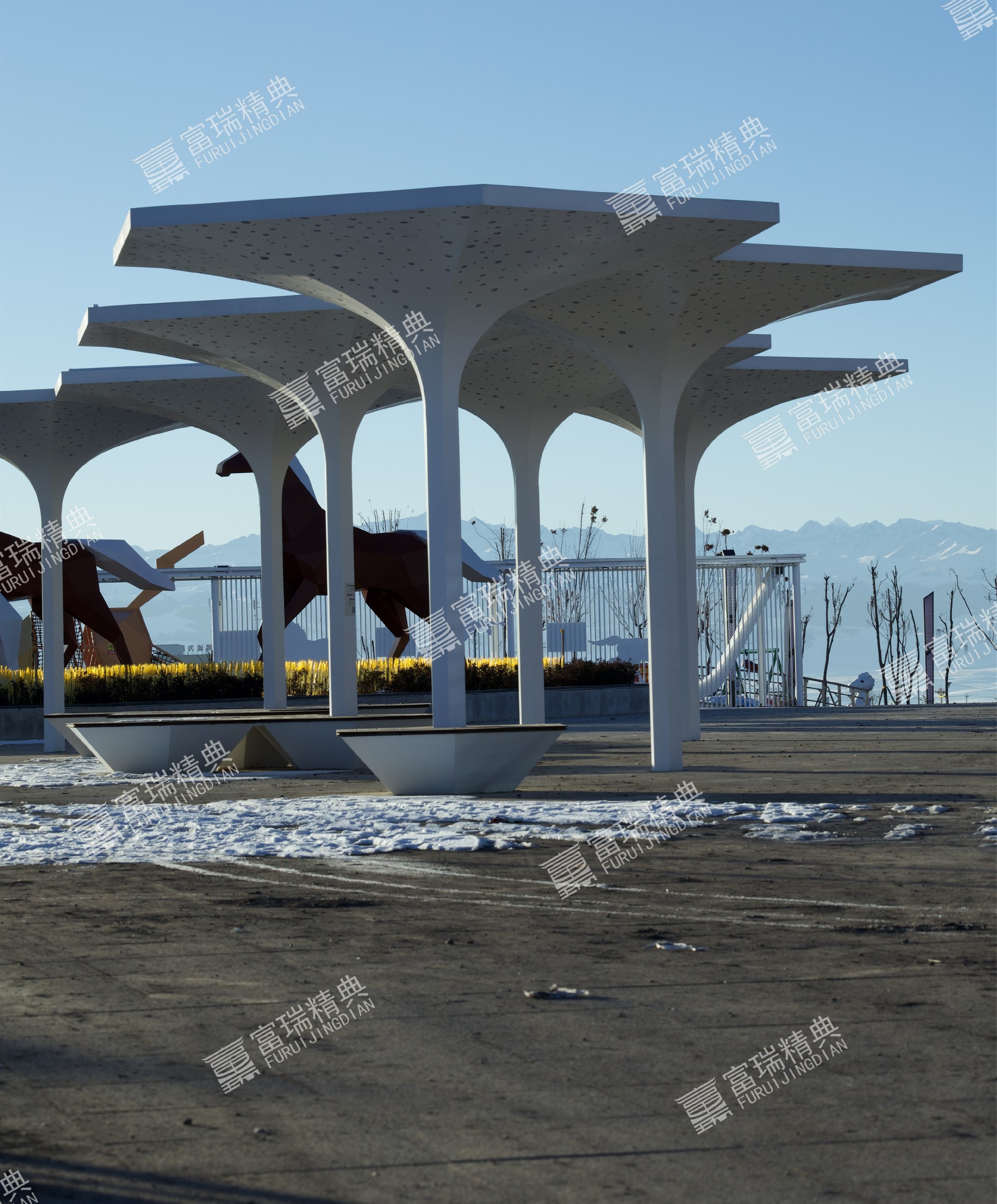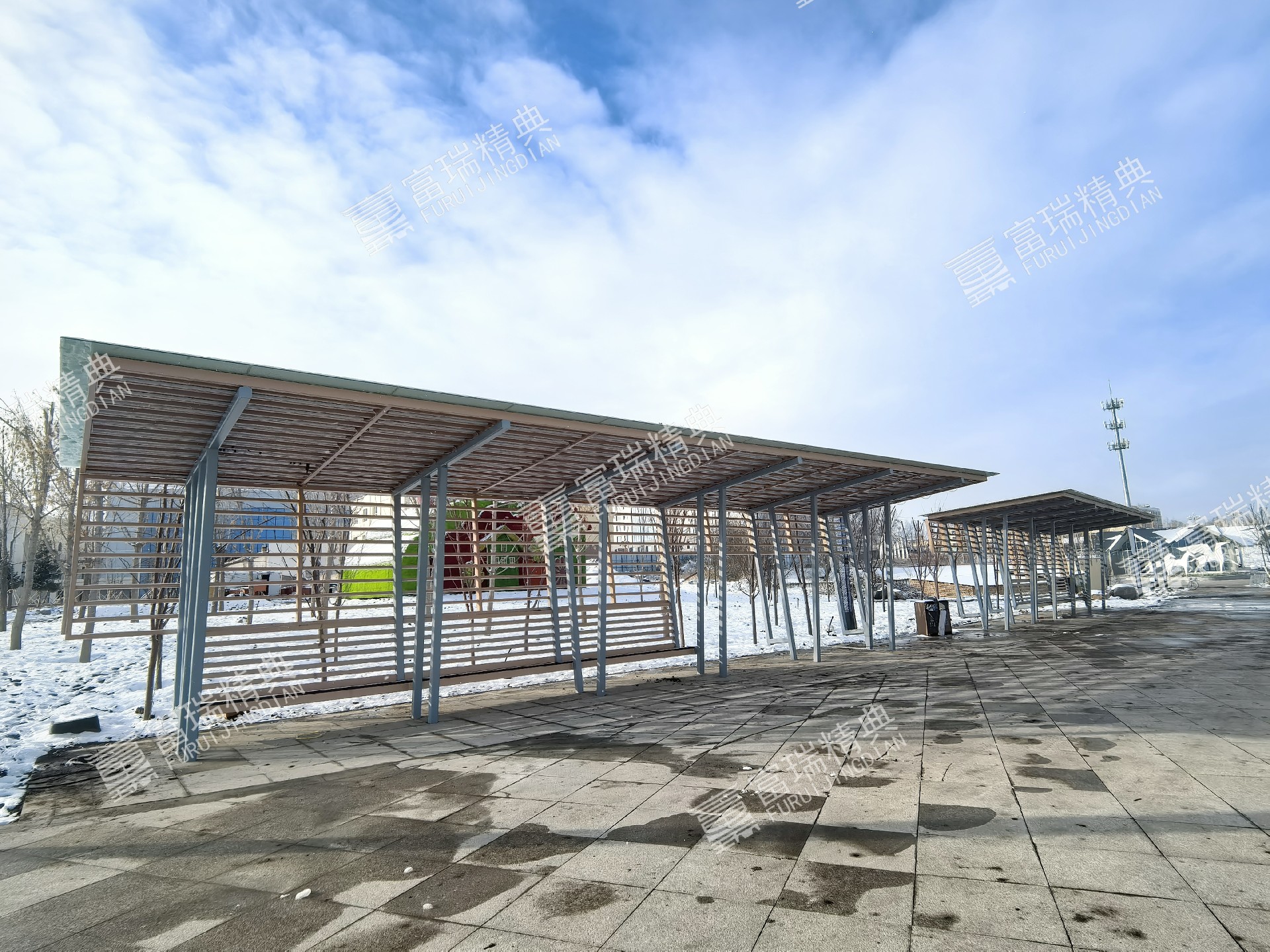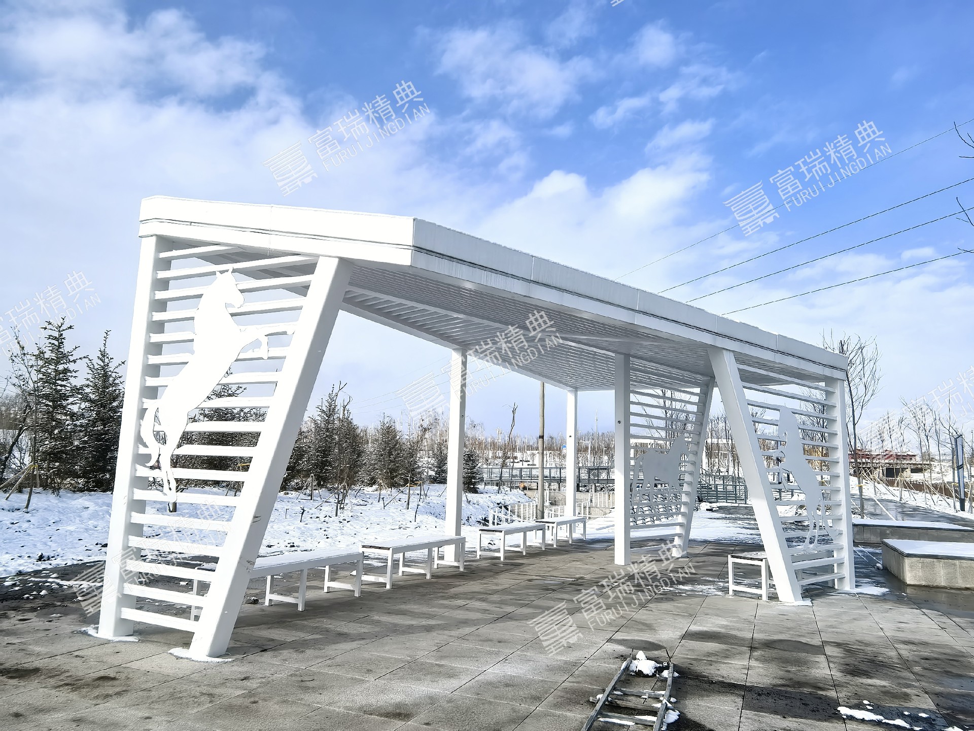 项目简介:新疆昭苏天马湖公园廊架景亭