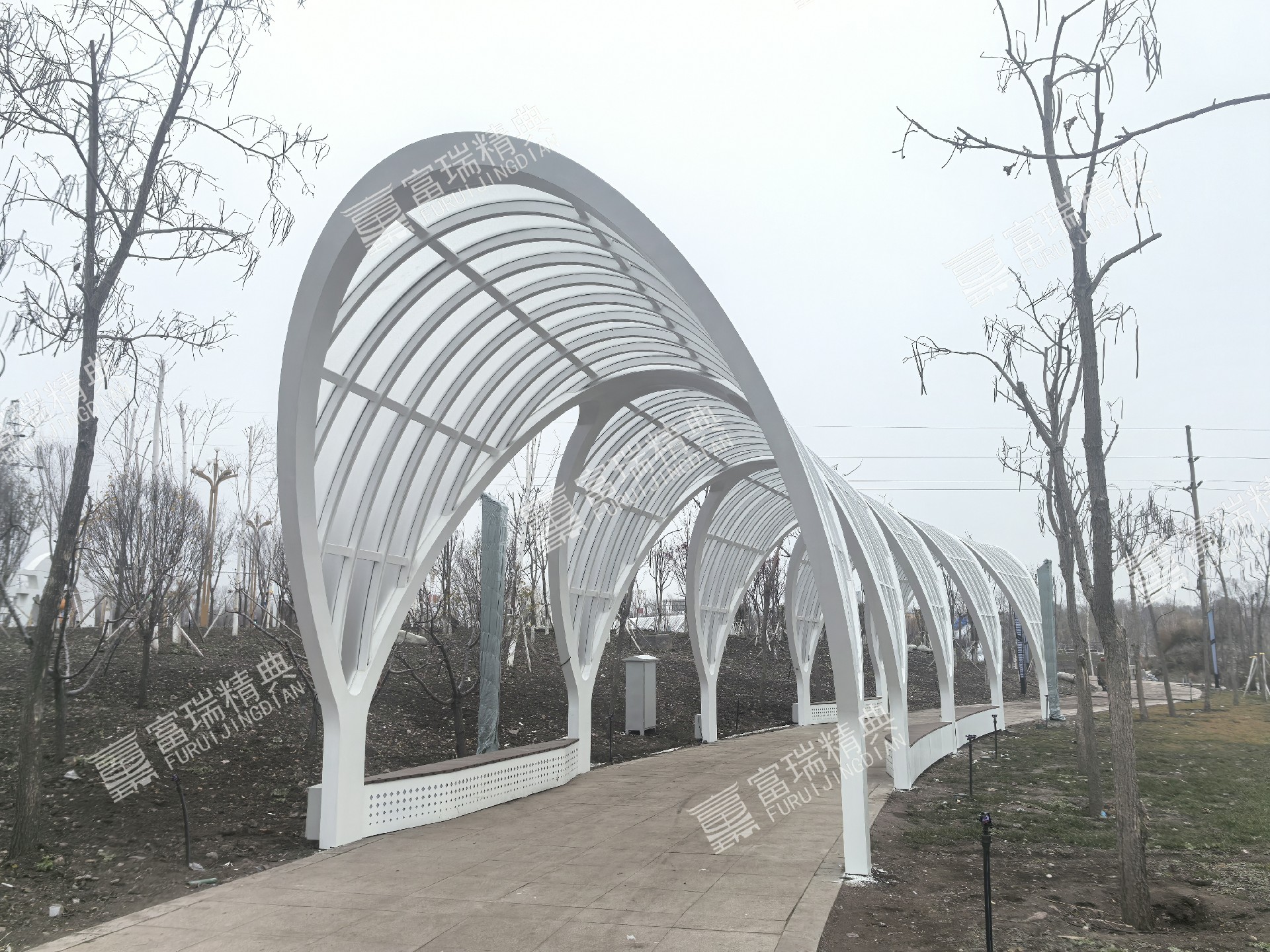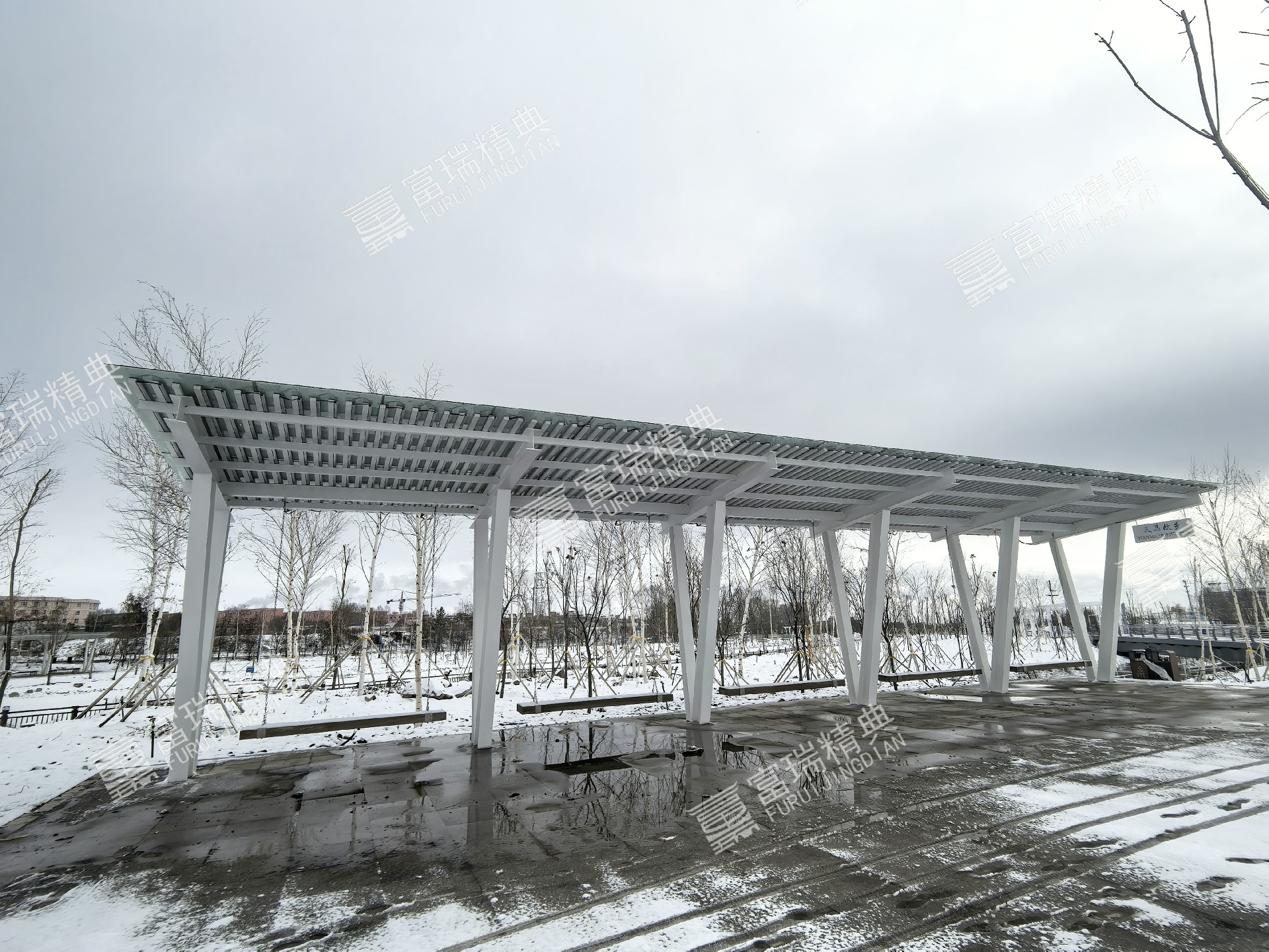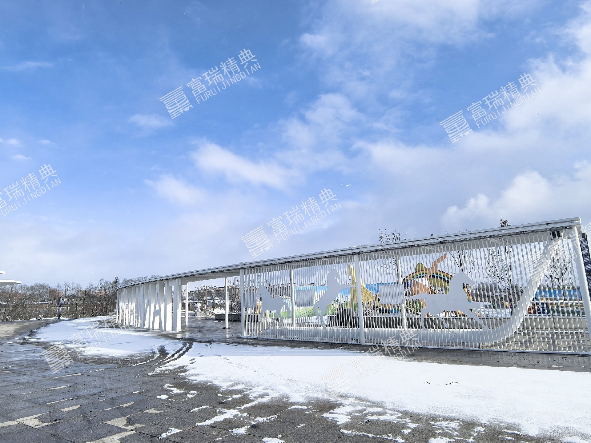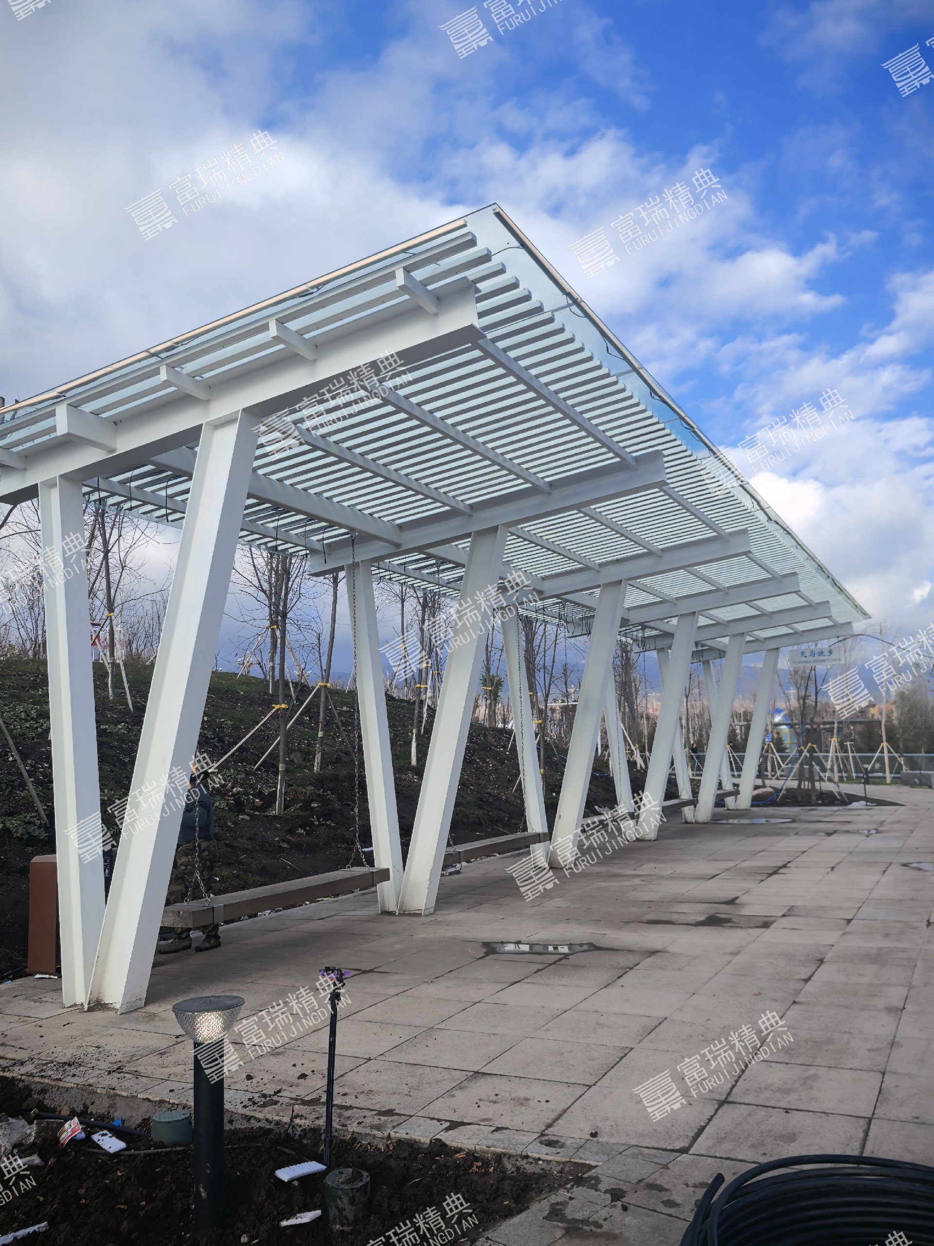 项目简介:新疆昭苏天马湖公园廊架景亭