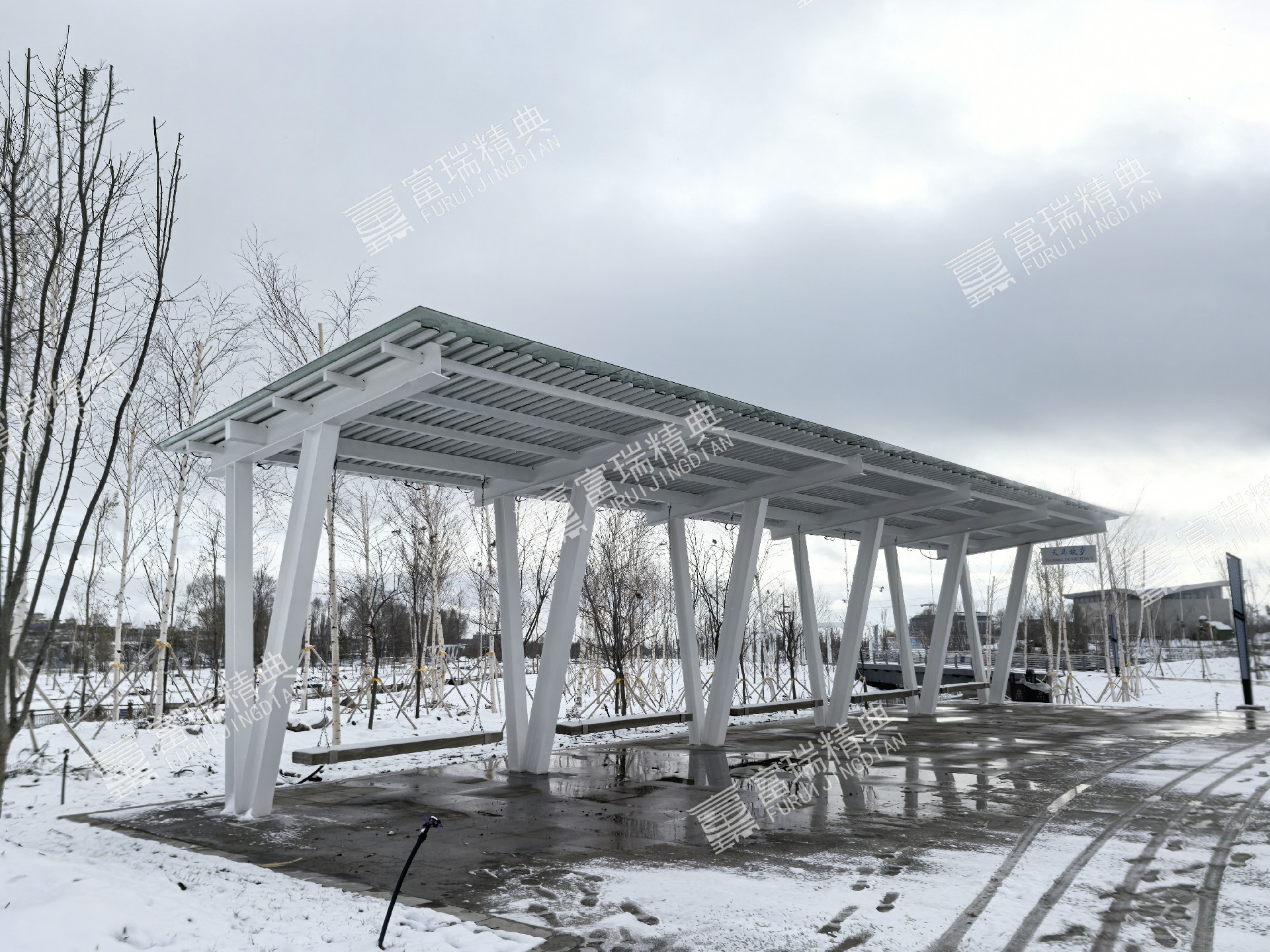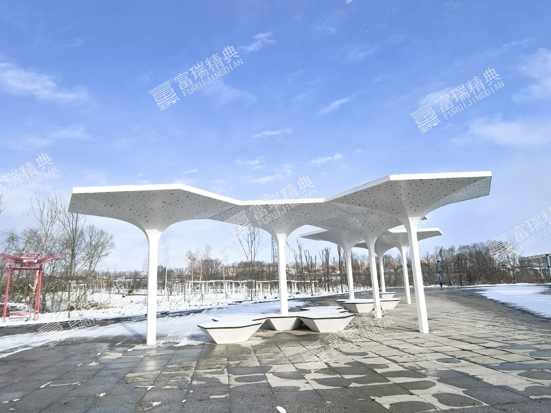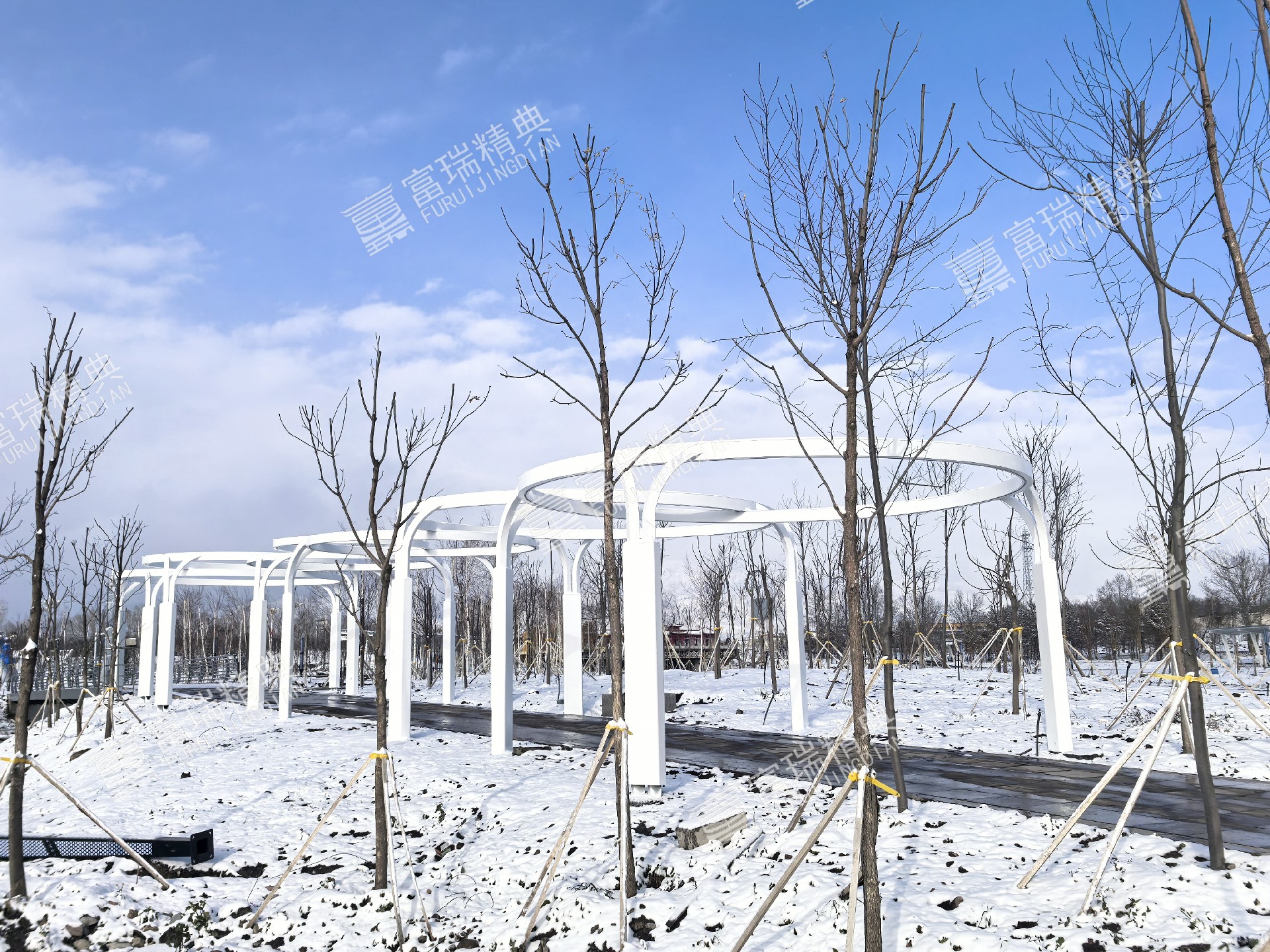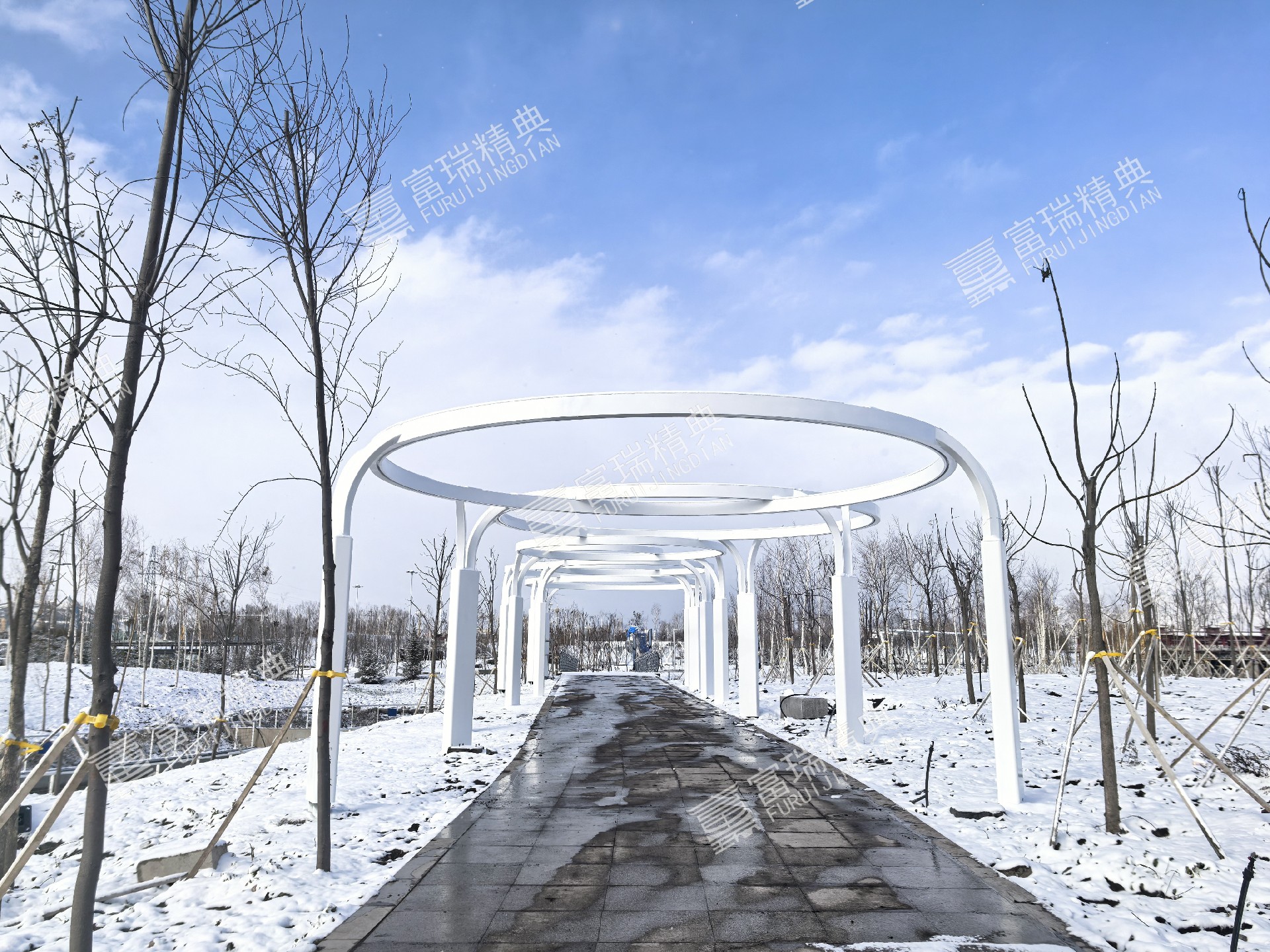 项目简介:新疆昭苏天马湖公园廊架景亭