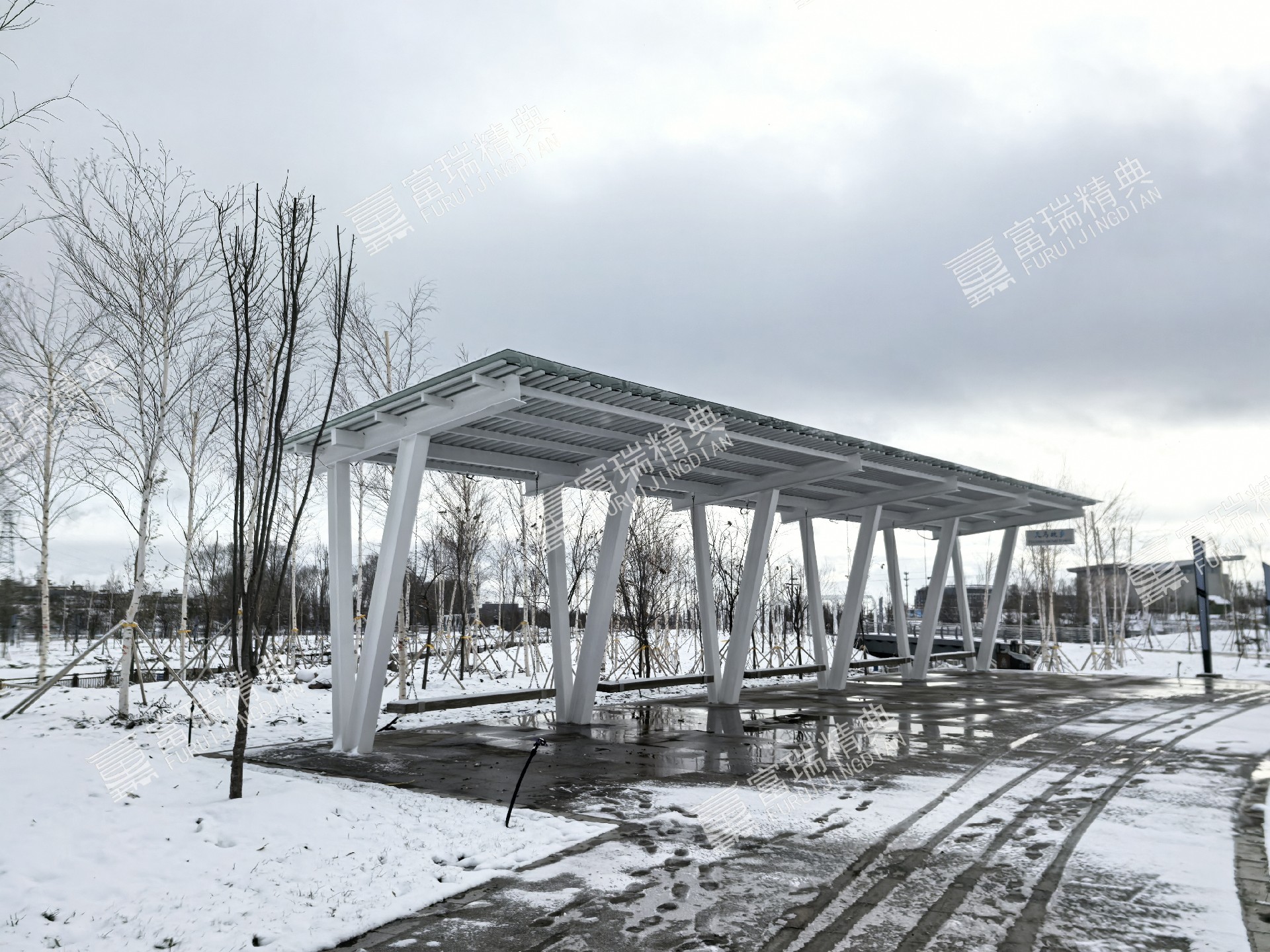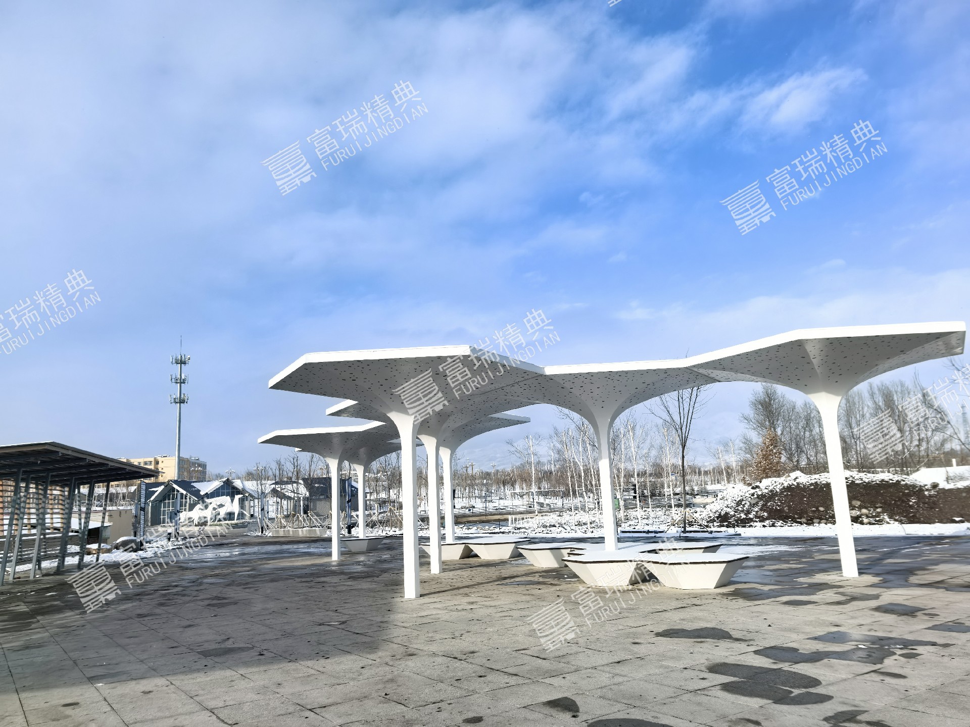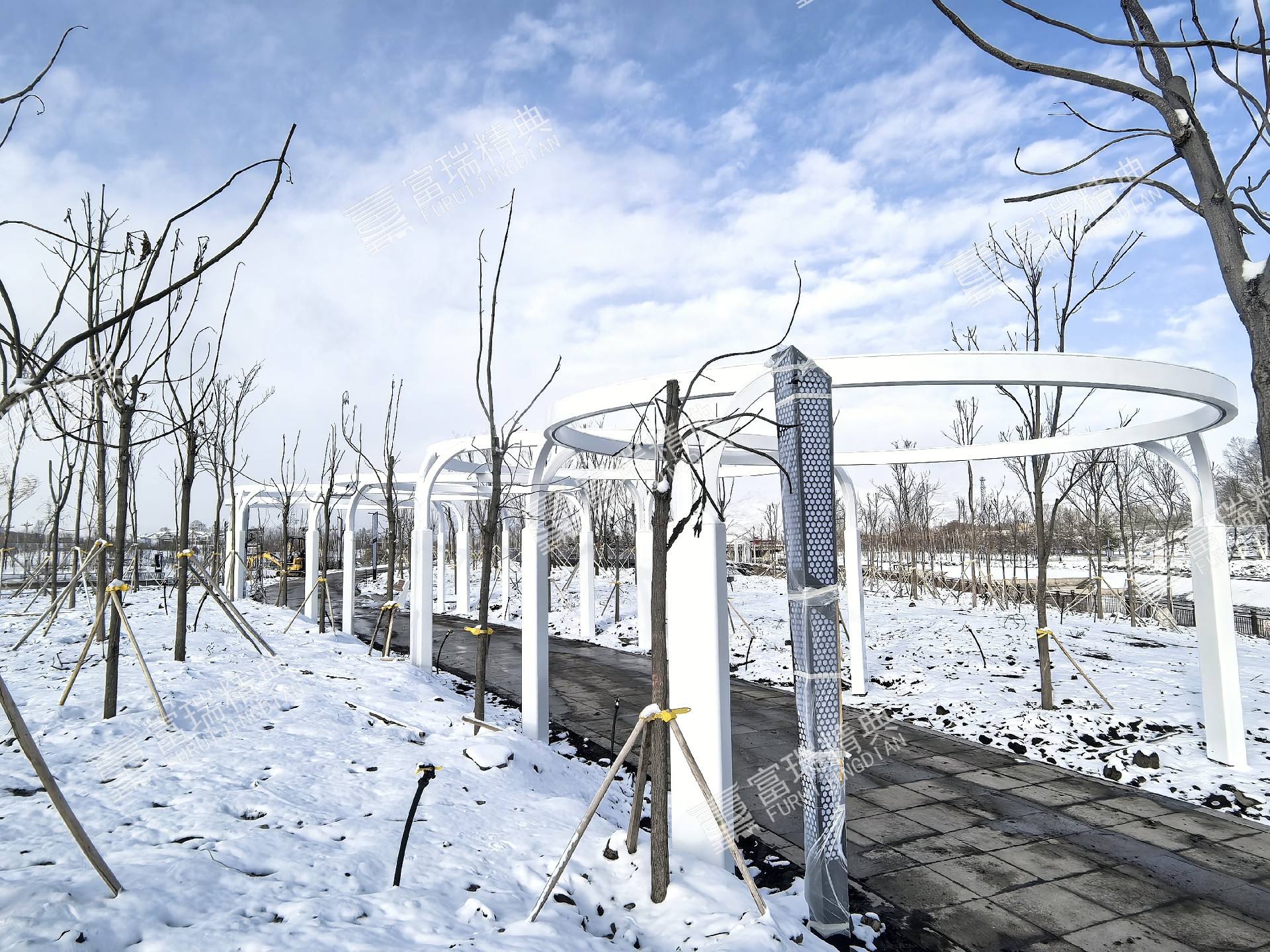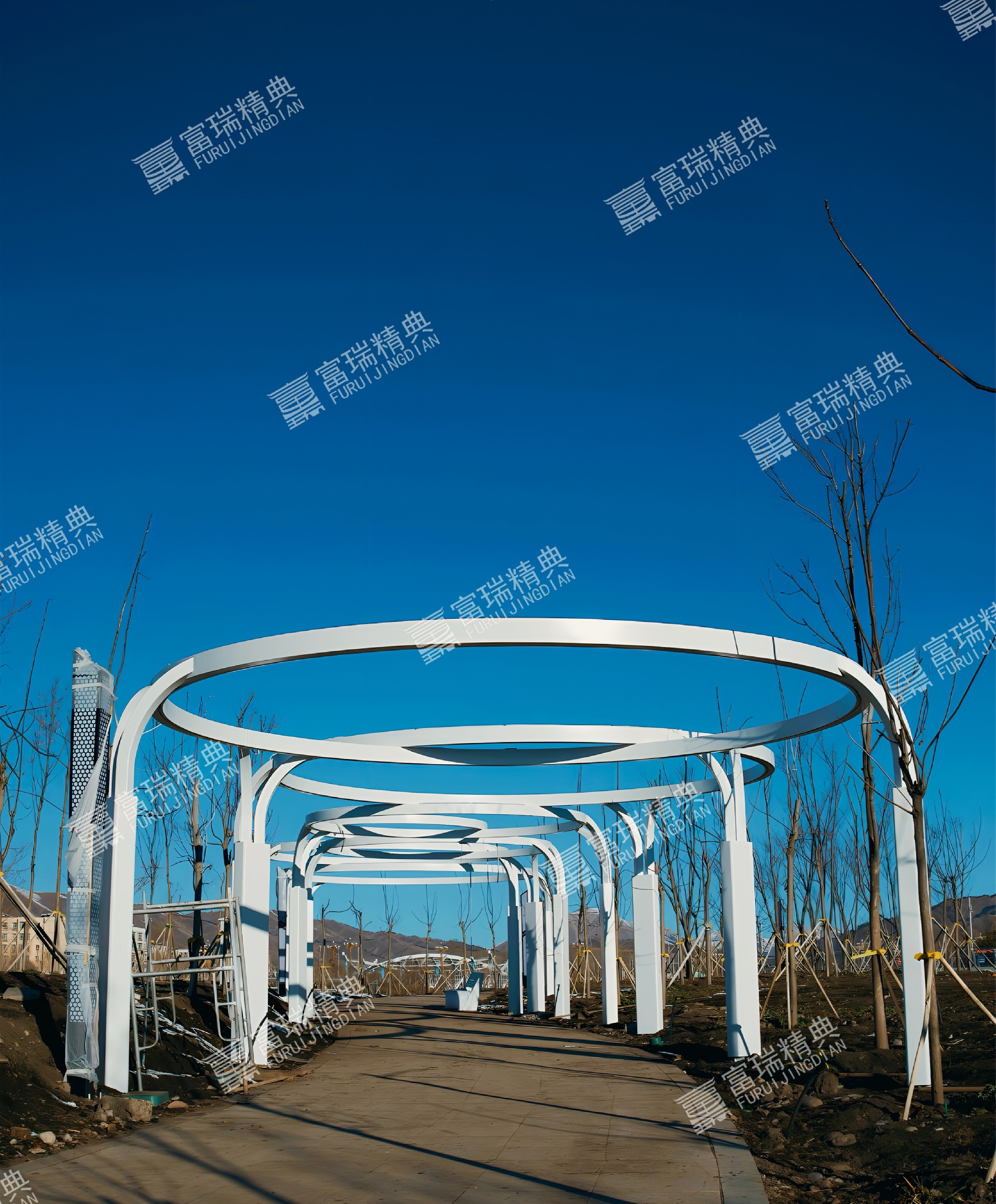 项目简介:新疆昭苏天马湖公园廊架景亭